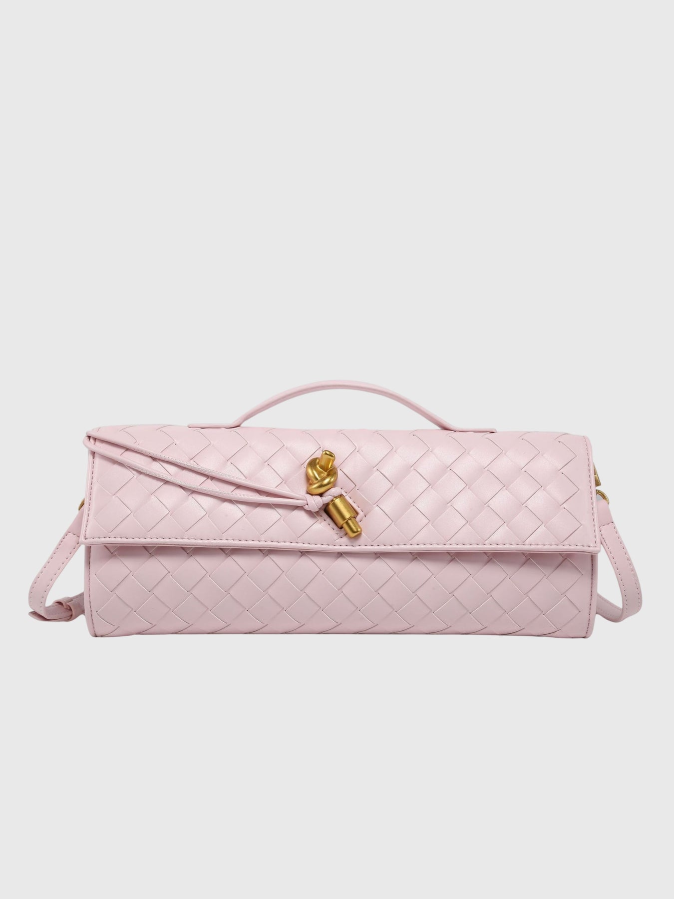 The Camila Luxe Slim Woven Clutch brings timeless elegance and smart functionality to your accessory collection. Featuring a sleek woven design and a sophisticated gold-tone knot closure, this bag adds a polished touch to both daytime looks and evening ensembles. Designed to hold your essentials with ease, it includes a removable strap so you can wear it your way—handheld or over the shoulder.